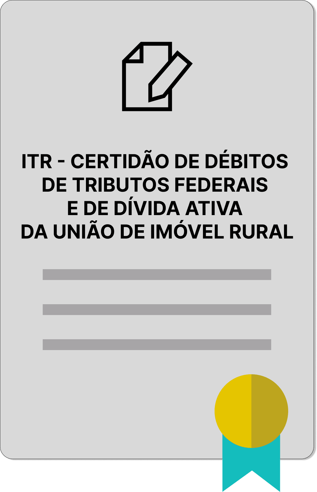 O Imposto sobre a Propriedade Territorial Rural (ITR) é a certidão que atesta a regularidade fiscal de um imóvel rural perante a Receita Federal. Serve para comprovar a regularidade fiscal do imóvel rural, indicando a ausência de débitos tributários ou pendências com a União. É solicitada em transações de compra e venda de imóveis rurais, financiamentos e regularizações fiscais. Somos uma solução particular que intermedia a solicitação e entrega de documentos no Brasil e Exterior.
